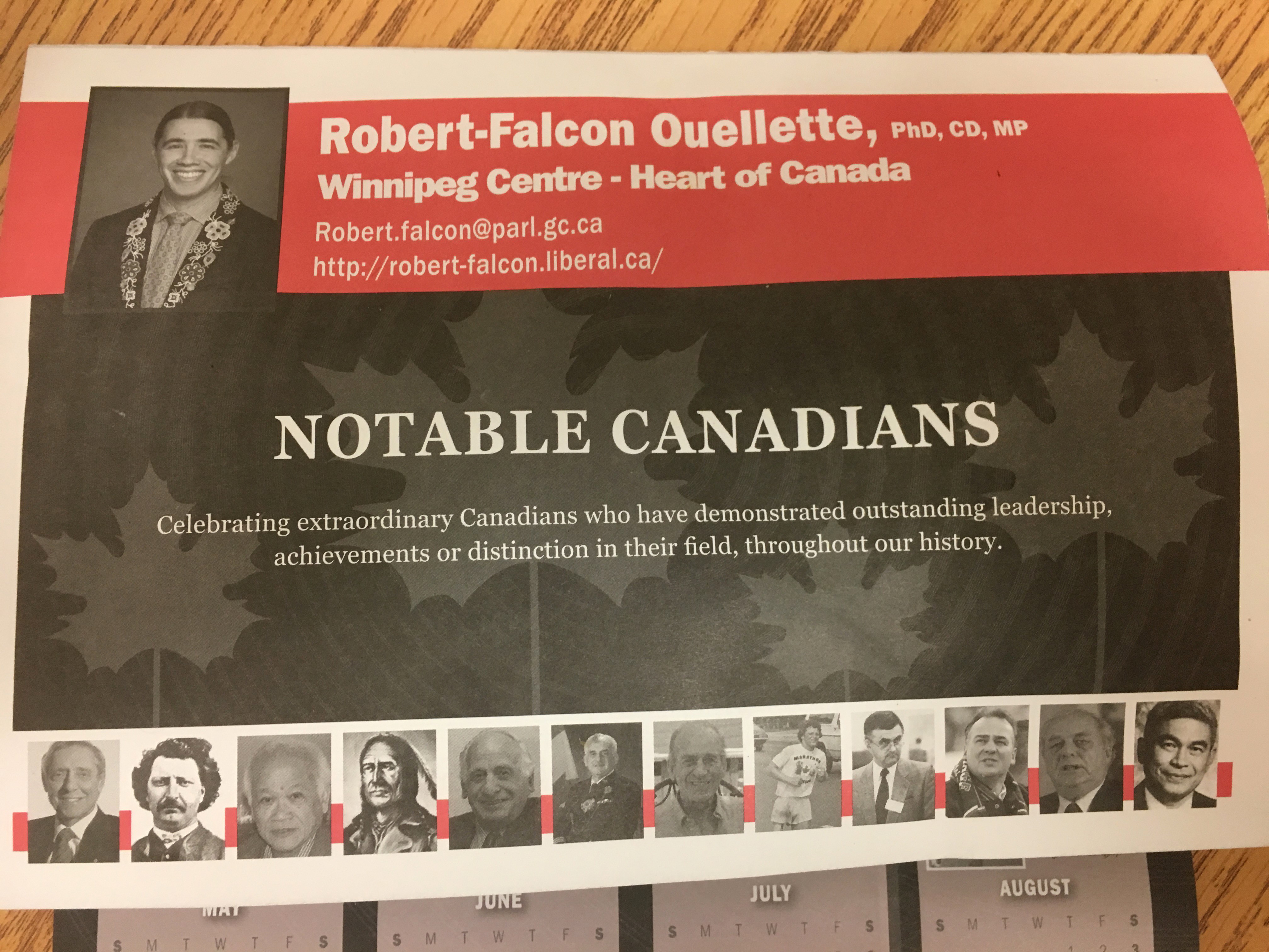 Robert-Falcon Ouellette, who represents the riding of Winnipeg Centre, recently sent a calendar by mail to his constituents that profiled 12 Canadians.