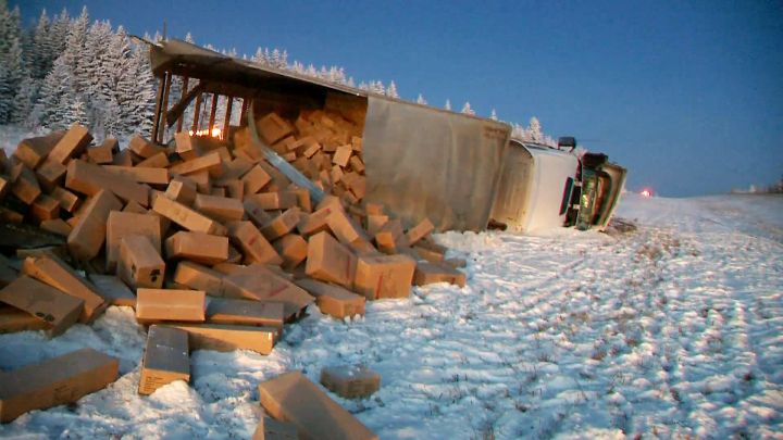The collision southwest of Cochrane, Alta., happened at around 2:30 a.m.., causing a large amount of debris to be scattered on the road.
