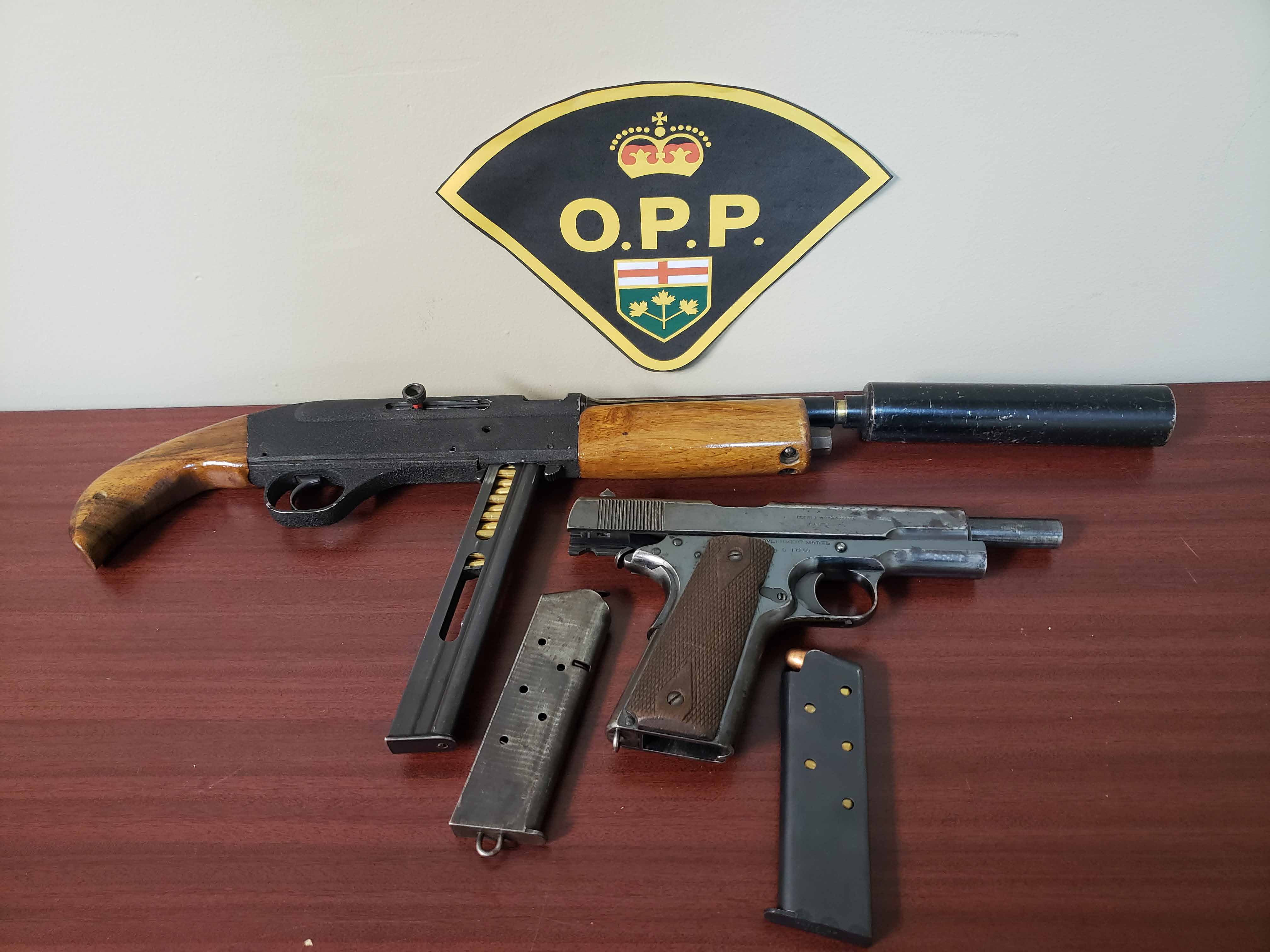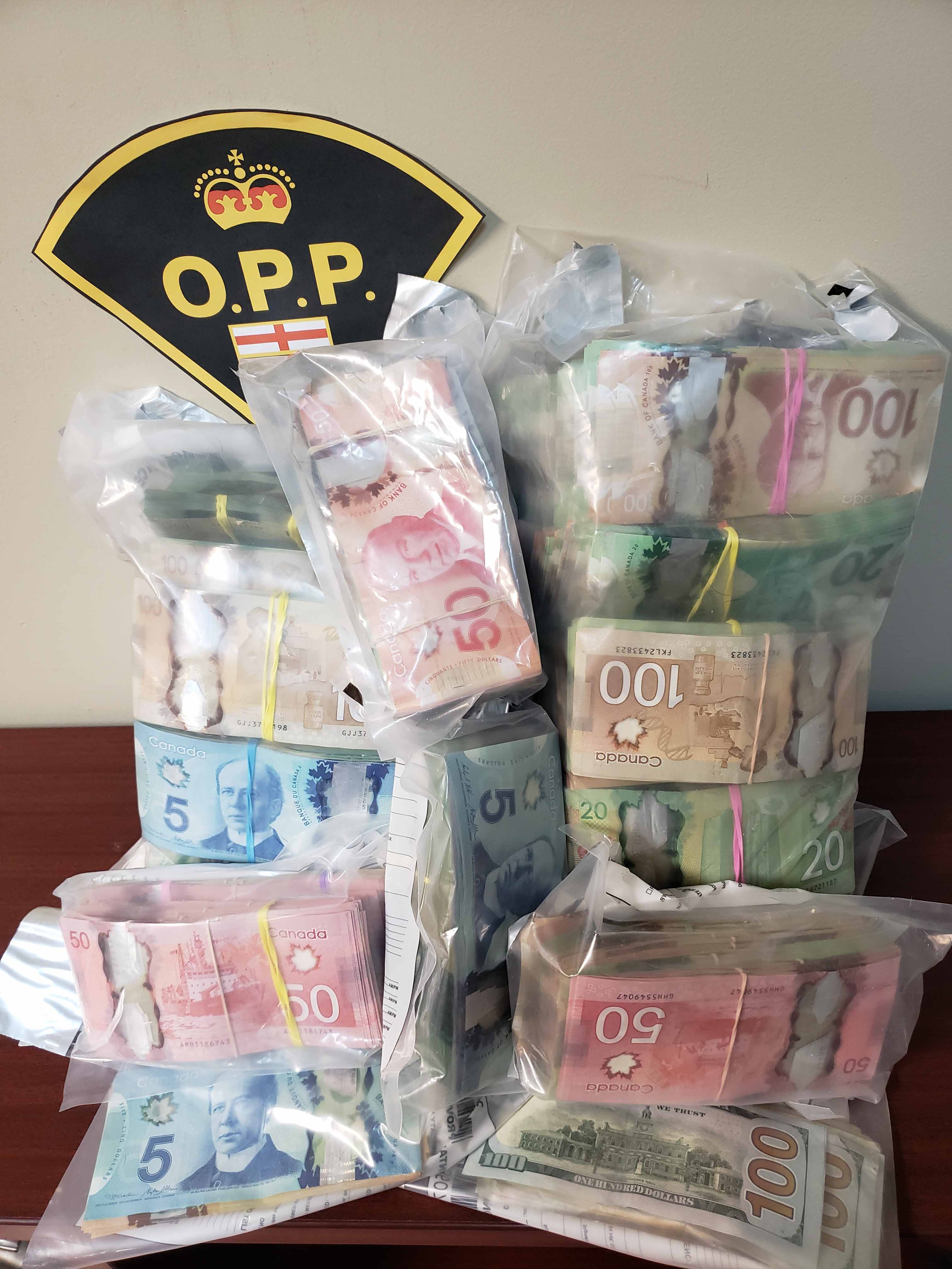 Police also say they found a large amount of Canadian and United States currency, cell phones, three firearms with ammunition and prohibited weapons and devices.