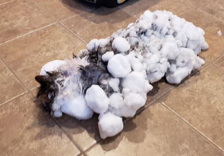 The cat’s owners rushed Fluffy to a local animal clinic in Kalispell.