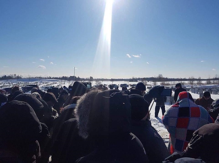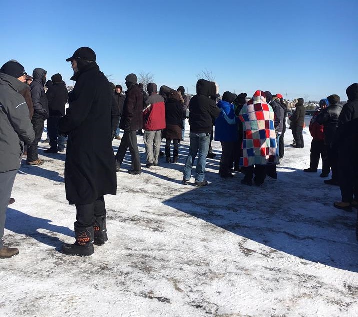 “There’s a whole crowd. I would say almost two hundred people and I can’t see any faces, only eyes, because it’s so cold that everyone is wearing a hat, and a hood. Some people have blankets and everyone’s wearing a scarf on their face,” he said.