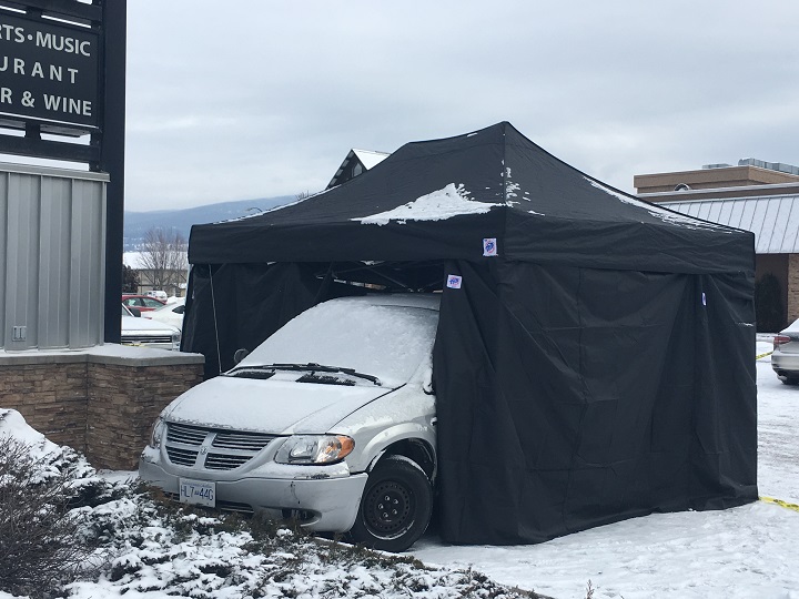 RCMP say they found a male who had died from an apparent gunshot wound in the parking lot. Whether or not the individual was shot in the van is still not clear, but it should be noted there are blood stains on the ground, just outside the front passenger door