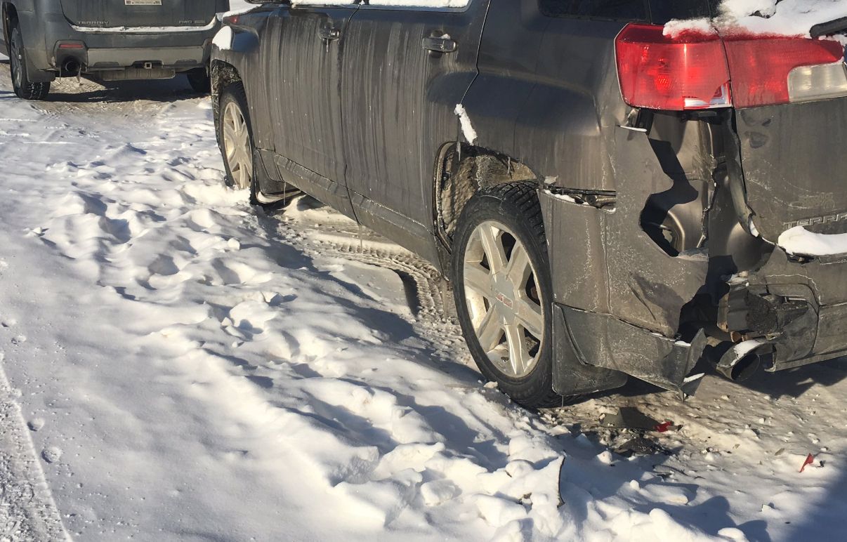 When Lynse Moisey went to brush the snow off her vehicle, she found her bumper and tailgate mangled.