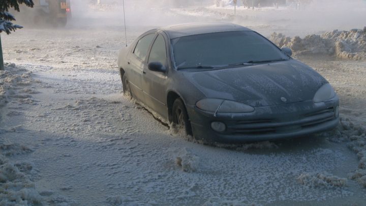 The overnight break caused at least one vehicle to be stuck in the ice, while a pickup truck owner told Global News the ice led to a fender-bender collision.