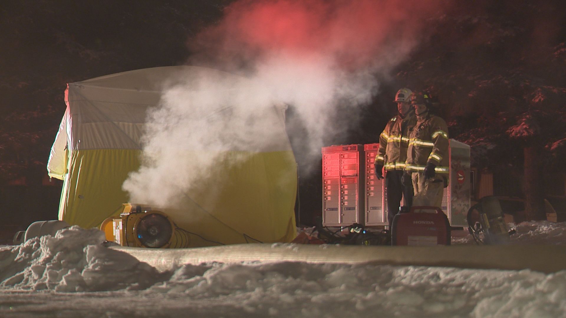 “That’s been introduced by Edmonton Fire Rescue, just a recent thing where we have these warming tents where the guys can go in after they’ve been decontaminated, take their gear off, put it in bags and have it transported separate from the trucks,” Pitman explained.