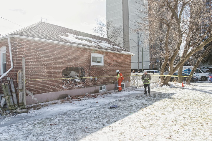 Toronto police say a man has been arrested after a bulldozer smashed into an east-end Toronto house on Saturday afternoon.