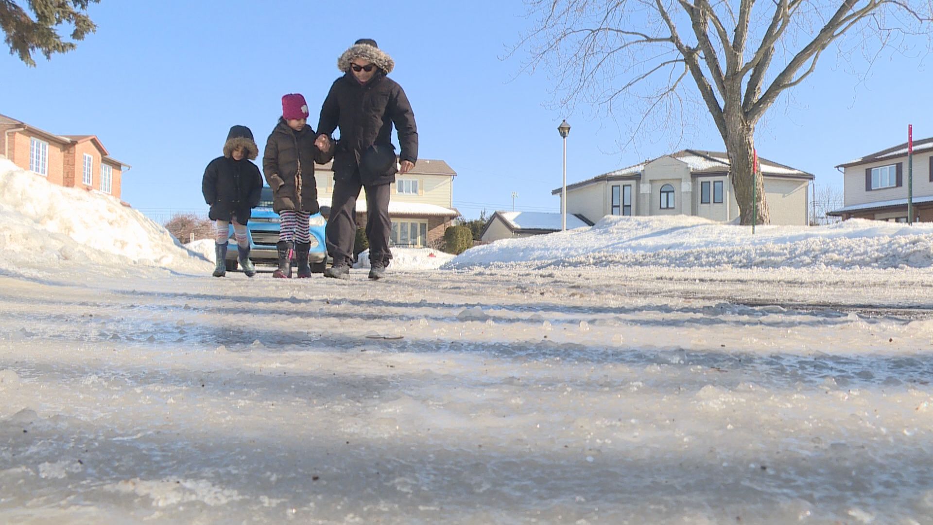 Dollard-des-Ormeaux (DDO) residents are denouncing icy conditions on side streets in the area. While clean pavement can be seen on many main streets, a large number of side streets are covered in a thick sheet of bumpy ice.