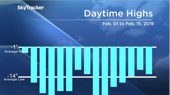Since Feb. 2, the city of Calgary has not made it above -11 C at all, and has dropped down to overnight lows of -29 C. The mean temperature from Feb. 2 to Feb. 10 ranged from -18 C to –26.2 C.