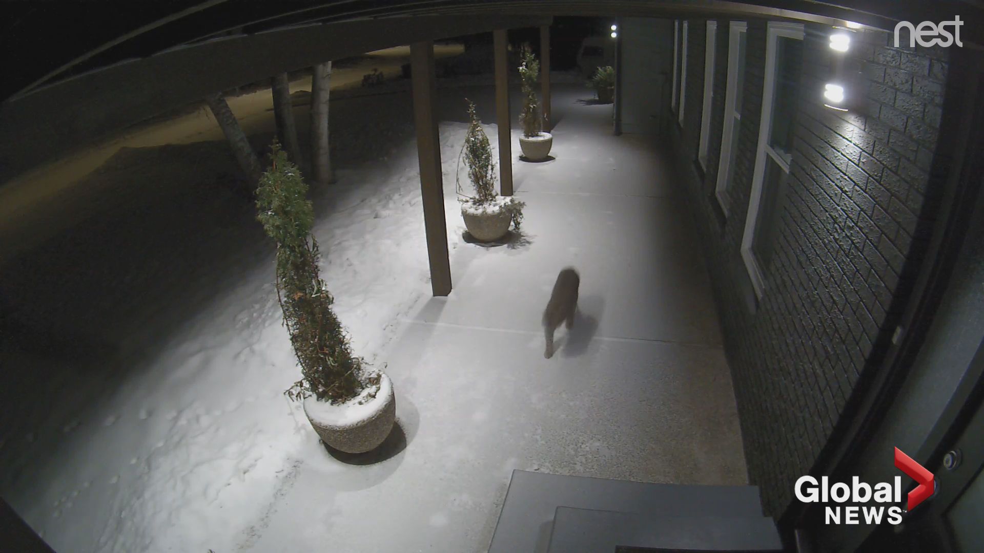 Surveillance video from a Kelowna home caught a bobcat taking a stroll along the sidewalk early Monday morning.