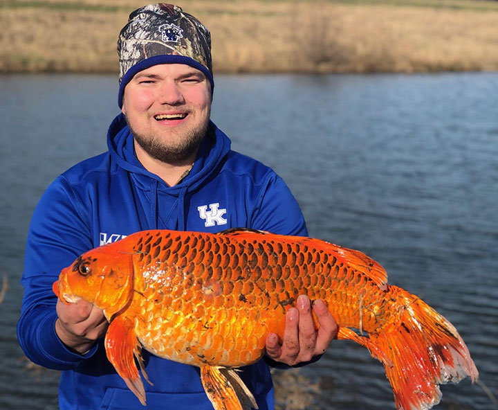 A fisherman got a surprise after reeling in a massive, 20-pound “goldfish” from a Kentucky pond over the weekend.