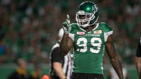The Riders signed the six-foot-two, 250-pound player to a one-year deal on Thursday.