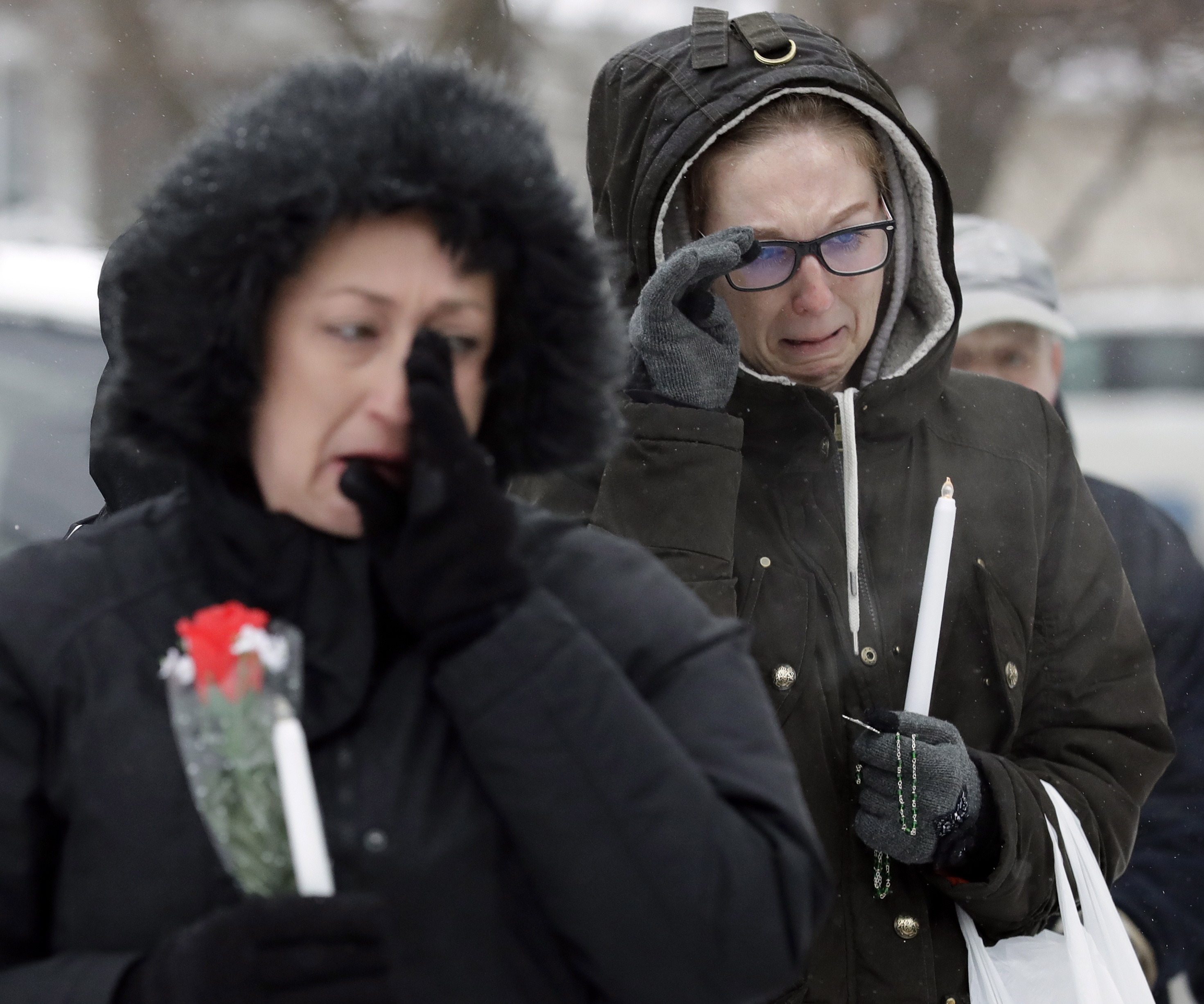 The city of Aurora tweeted that about 1,700 people attended the vigil in a snowy lot outside the industrial valve manufacturer where several ministers and a rabbi called for healing.