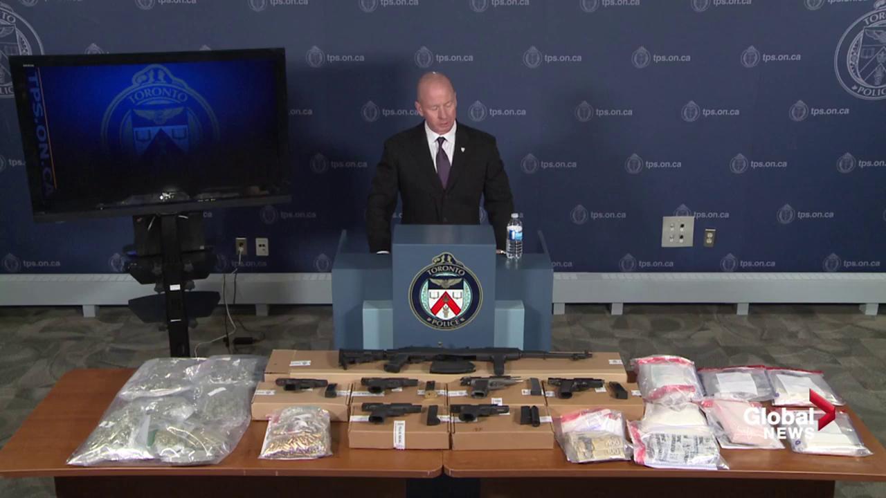 Toronto Police Drug Squad Insp. Steve Watts said the suspects hid the drugs and guns under false lids in concealed areas inside vehicles and in custom-built furniture. He said the number of guns seized by officers is particularly noteworthy.
