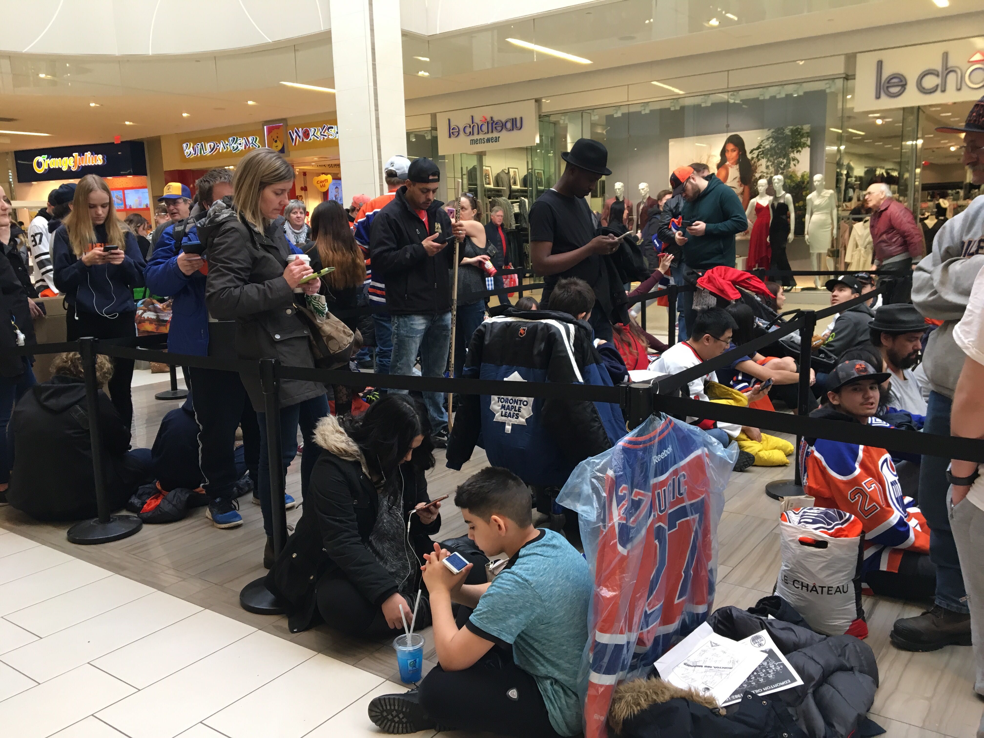 Fan Nathan Makarowski had been in line since the mall opened, “running off a good four hours of sleep and a sandwich.” He was excited to see McDavid, saying it isn’t very often you get to meet inspirational players.