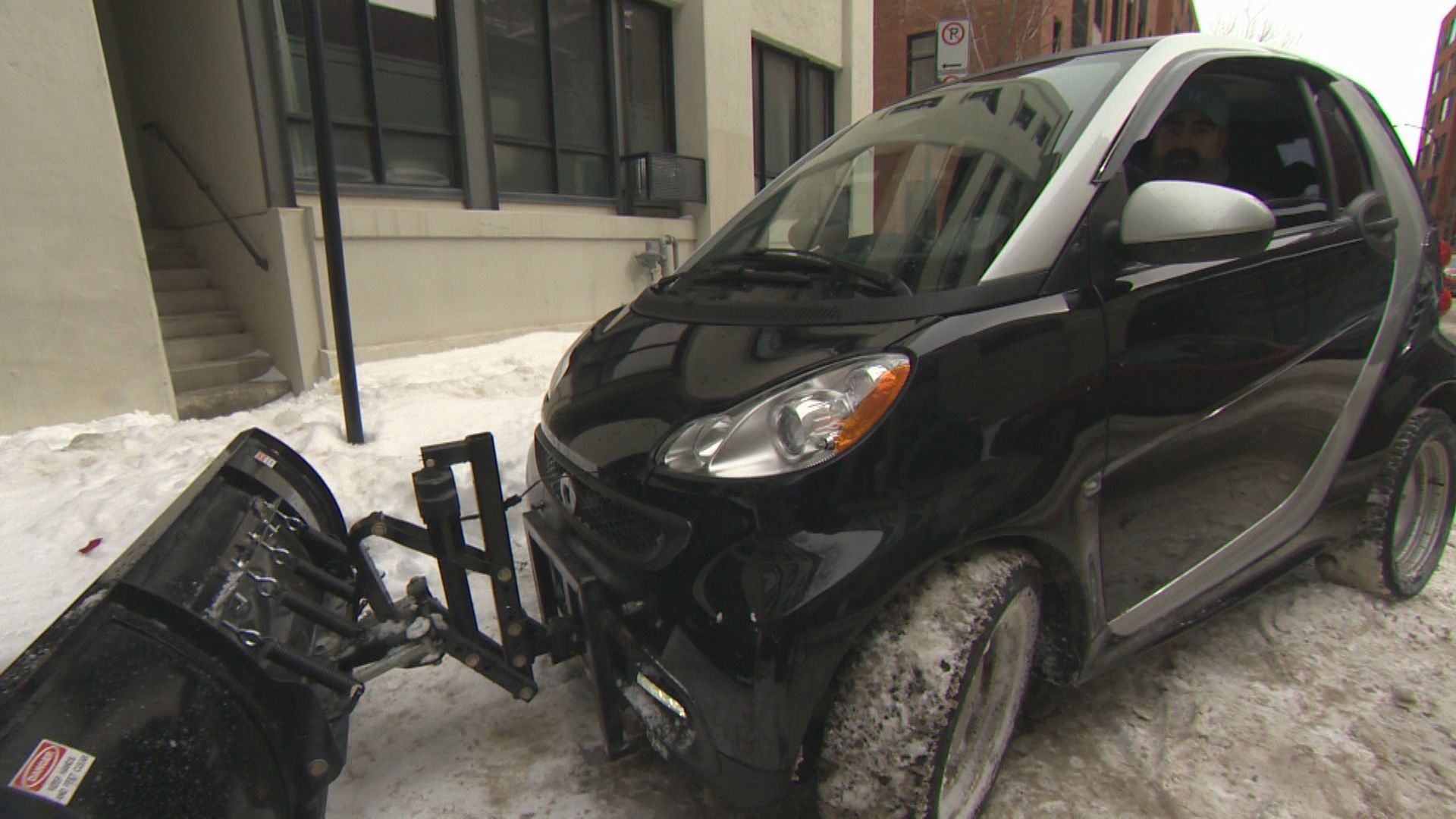 Montrealer Frank Espina has come up with a unique and clever solution to clear snow at his condo building in Saint-Henri — attach a plow to a Smart car.