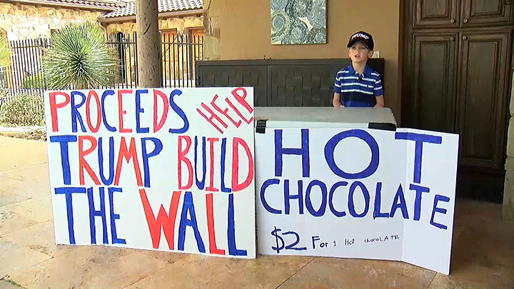 A seven-year-old Texas boy has raised approximately $2,000 by selling hot chocolate in support for U.S. President Donald Trump’s proposed southern border wall.