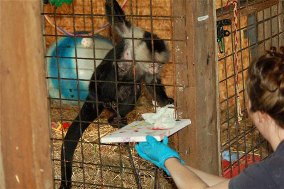 Pockets Warhol, a white-capped capuchin monkey, has started painting abstract creations. They have been sold to buyers as far as Europe and Isarel for hundreds of dollars. Primate Paints for Pocket Money Art critics have gone bananas over paintings by a monkey. Pockets has had his paintings sell for as much as GBP 250 to buyers from as far as Europe and Israel. He paints with his tail, hands, feet and even a brush. The works themselves are abstract with colours splattered all over the canvas. Pockets lives on Story Book Farm, a Primate Sanctuary in Canada where he arrived two years ago. He is named after American pop artist Andy Warhol, whom he resembles with his wild white hair but his paintings have been likened to work similar to Jackson Pollock and Joan Mitchell.