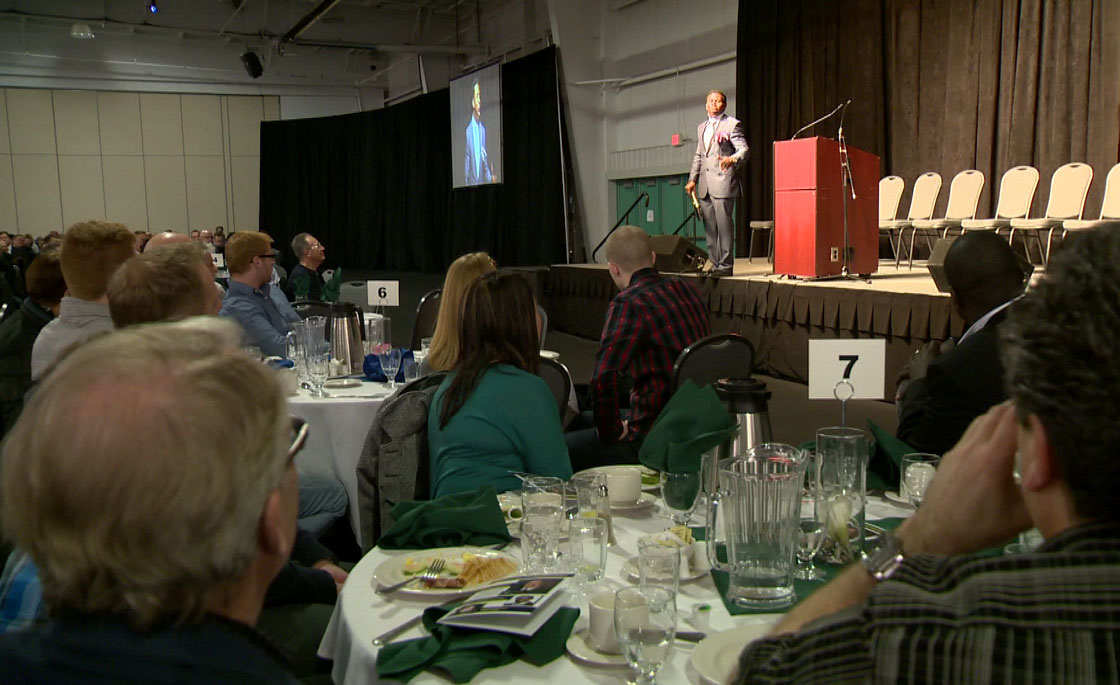 The annual breakfast’s name change certainly didn’t affect the numbers. Around 1,600 people showed up, about 600 more than last year.