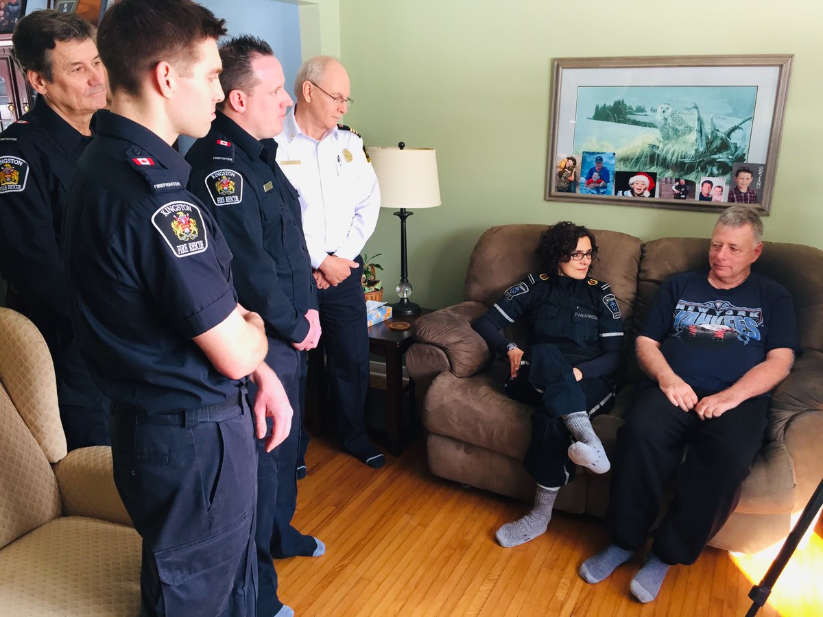 Hodgins has served the greater Kingston community for over 40 years as a paramedic and volunteer firefighter, making many friends along the way, some of which showed up at his home on Friday morning for a visit.