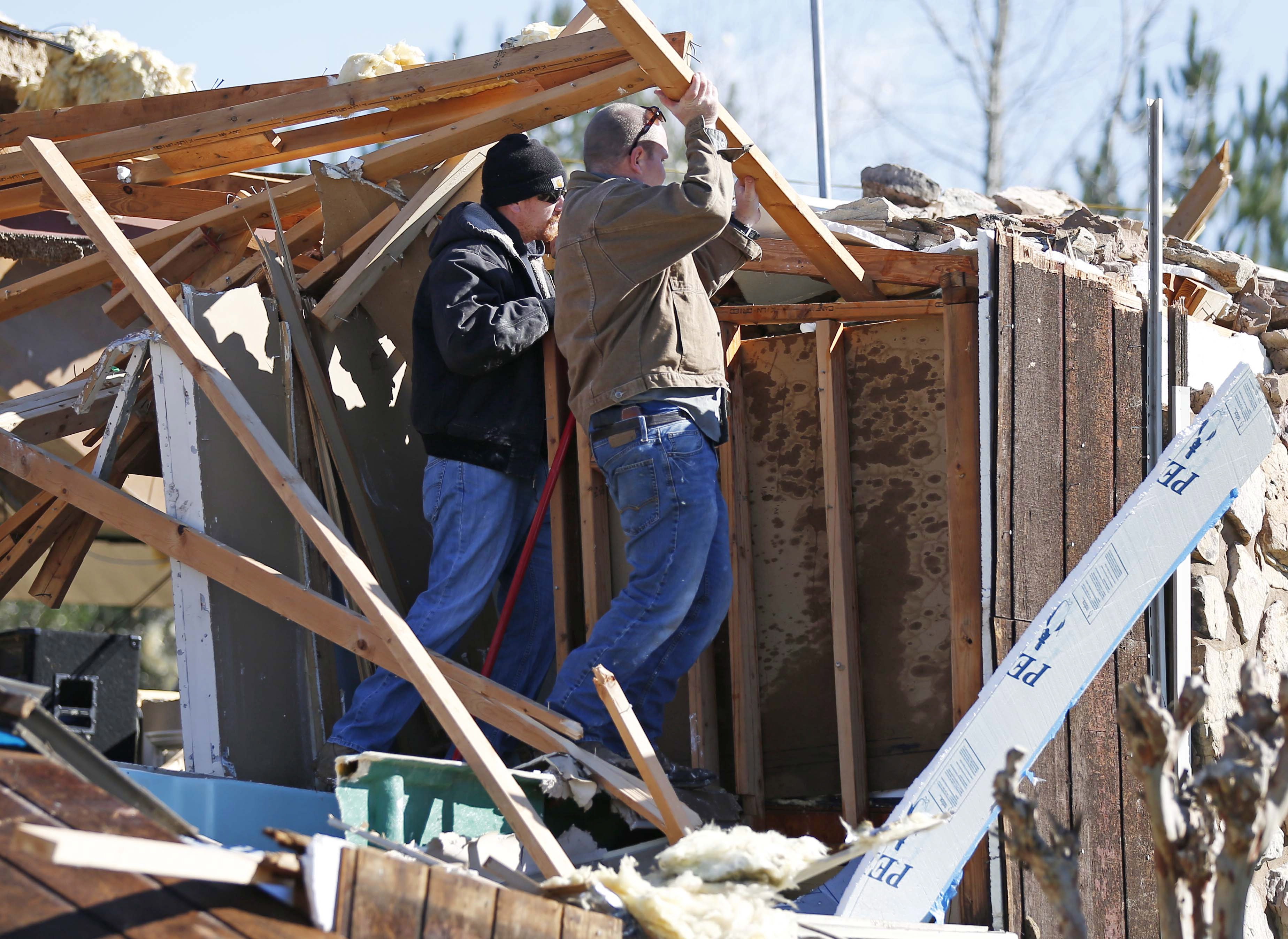 Columbus Mayor Robert Smith Sr. said 41-year-old Ashley Glynell Pounds of Tupelo and her husband were renovating a house Saturday evening, and when the husband went to get them something to eat, the building collapsed in the storm and killed her.