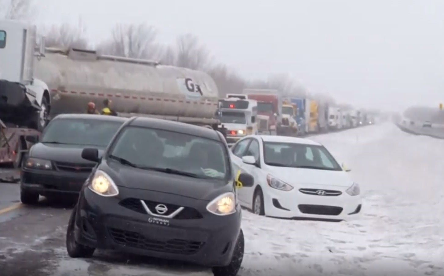 A pileup involving about 20 vehicles forced the complete closure of Highway 15 south at Saint-Jacques-le-Mineur, in the Montérégie region.