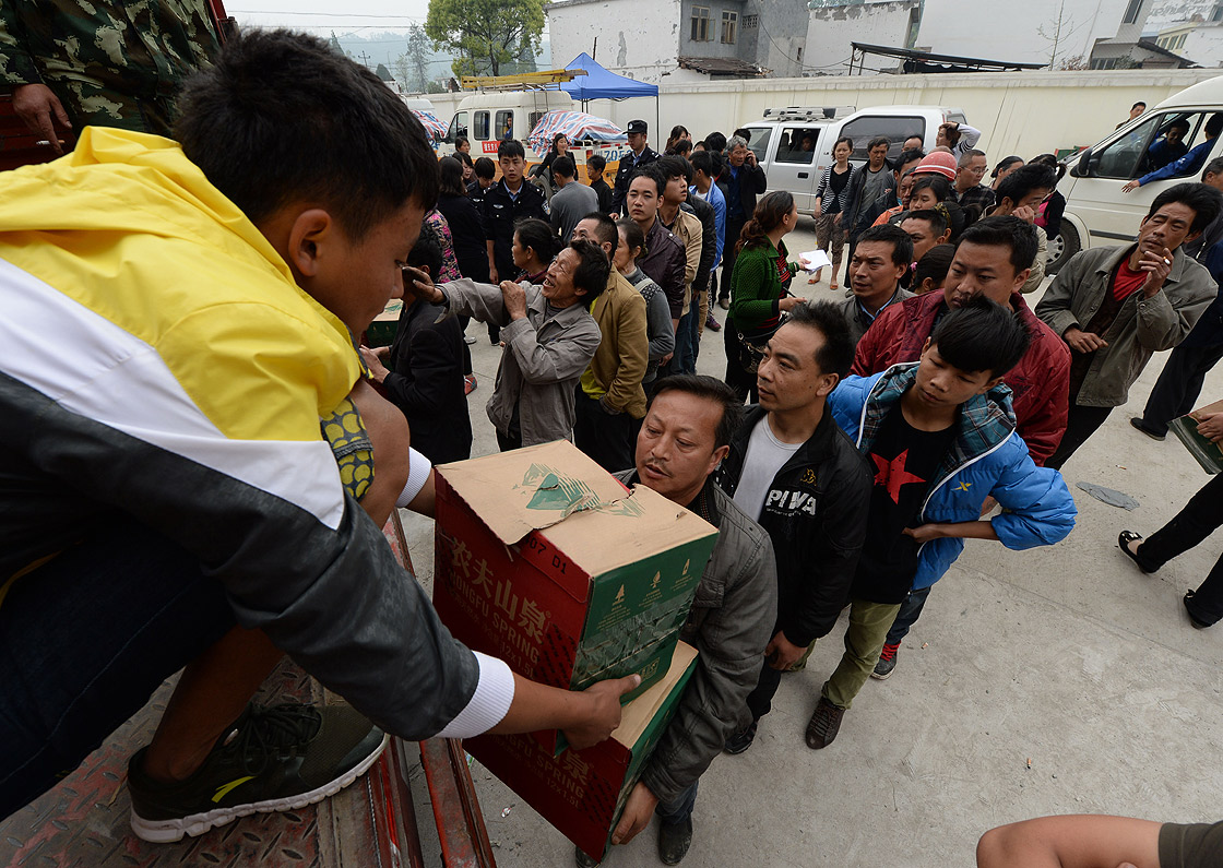 LUSHAN – After dynamiting through landslide-blocked roads, Chinese relief crews hurried food, water and other supplies into the rural hills of China’s Sichuan province Monday, two days after an earthquake killed at least 188 people and injured more than 11,000.