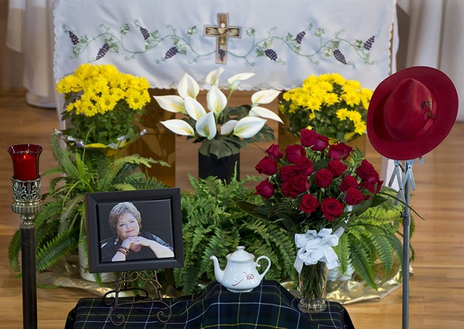 On Monday, relatives, friends and fans packed a small Roman Catholic church overlooking Cape Breton’s Bras d’Or Lakes where — as per her wishes — MacNeil’s cremated remains sat in a white teapot alongside one of her many hats and a portrait of her.