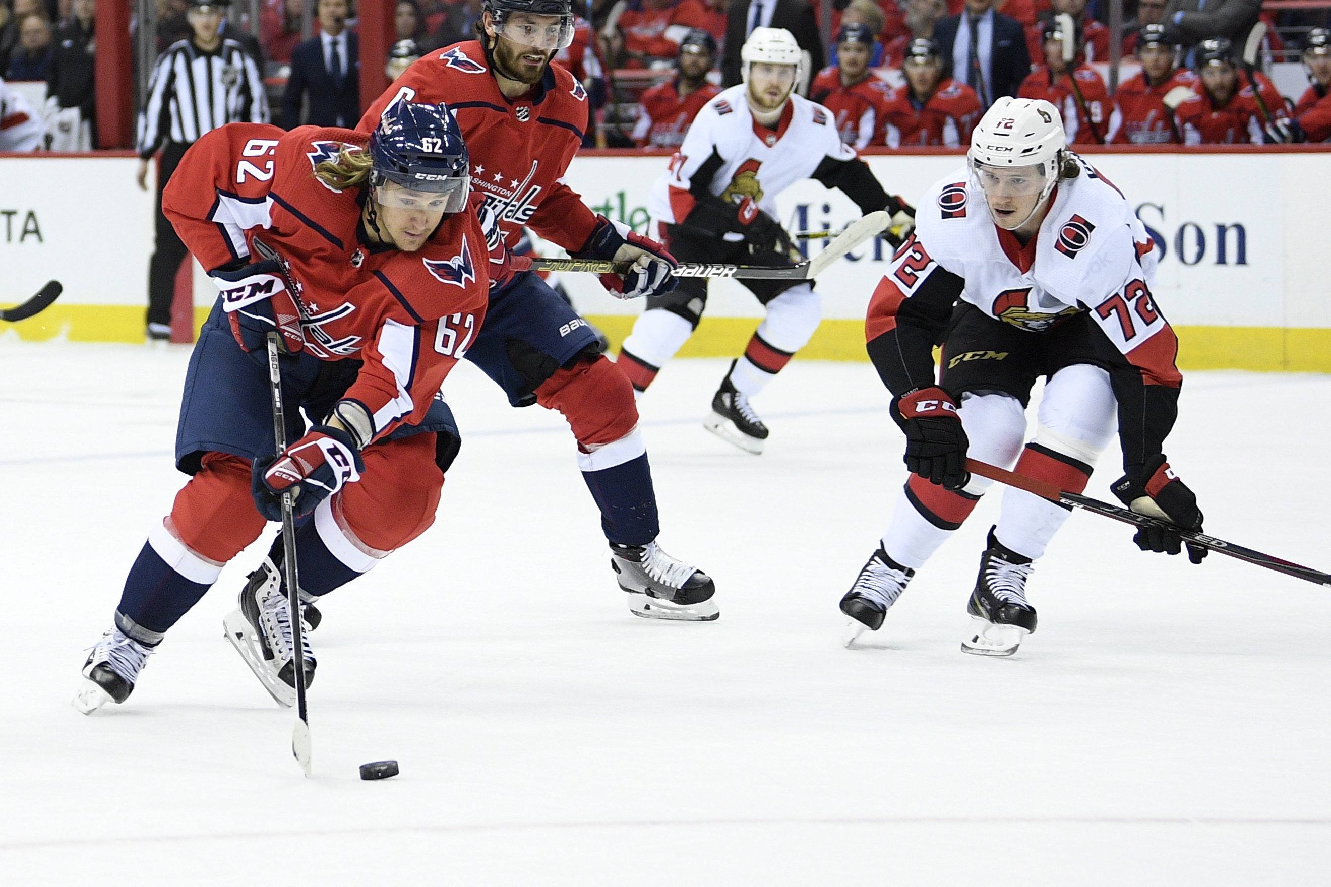 But after sleepwalking at the start, Washington got going, scoring a pair of goals 53 seconds apart against goaltender Anders Nilsson and an overwhelmed defence to make it 2-all after one period.