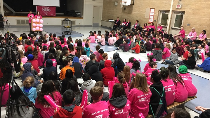 Thousands of students across Saskatchewan, including students from Glen Elm Community School and St. Angela Merici Elementary School in Regina, are wearing a pink T-shirt branded with “Be Someone’s Hero” during K+S Pink Day on Wednesday.