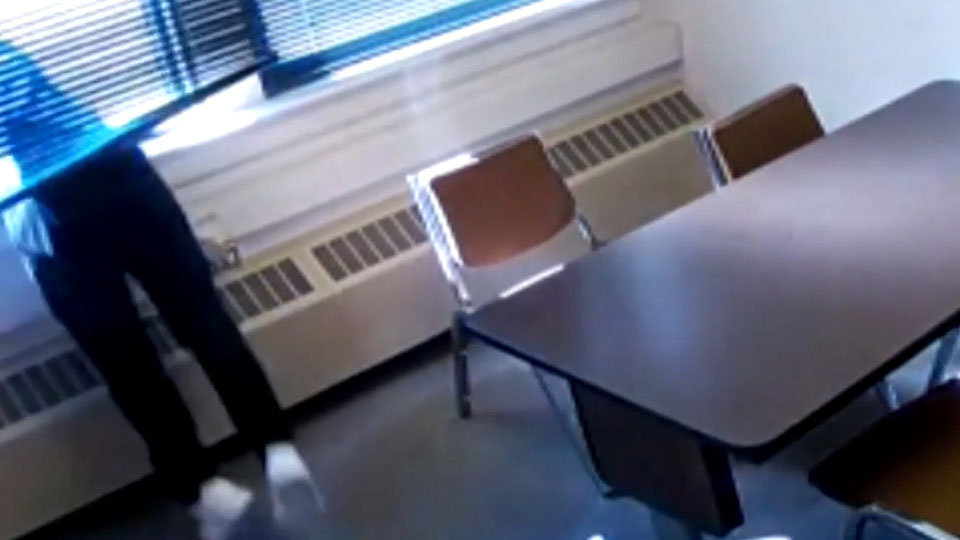 Security footage, released this week, shows that an official told him to wait “a minute” before he could remove the handcuffs he was wearing. That’s when the door closed and the teen was all alone.