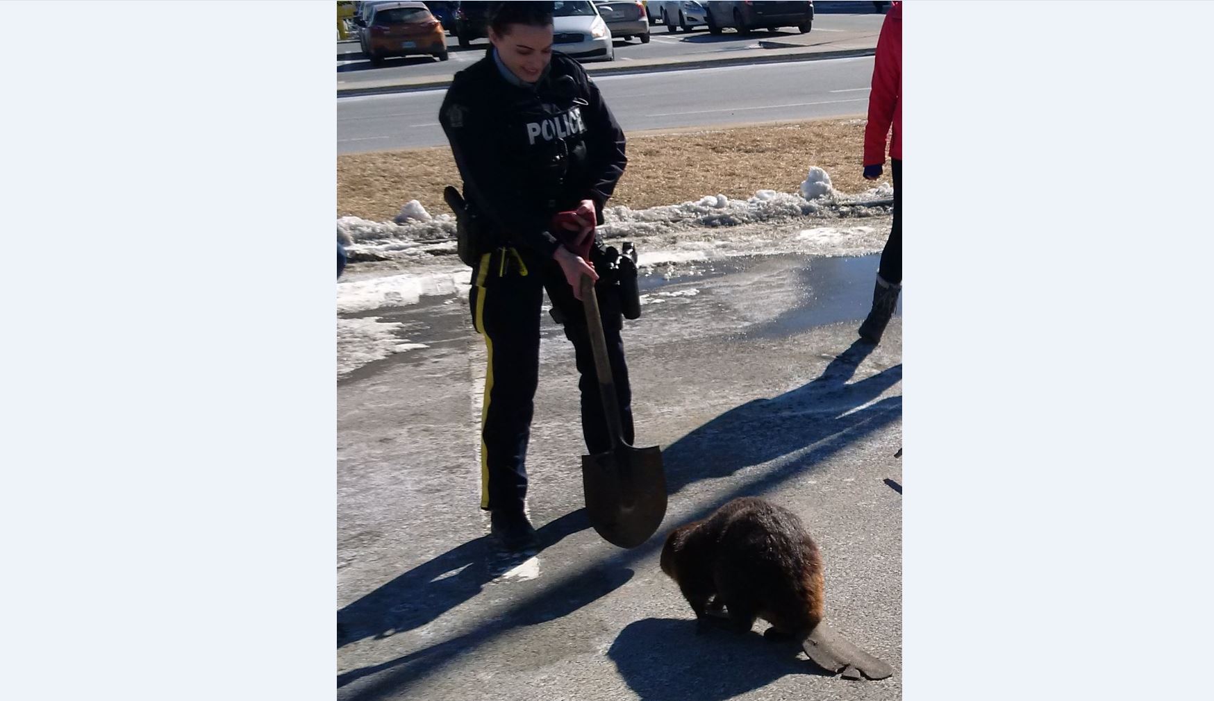 Police members were able to get the beaver into a bin until representatives from the Hope for Wildlife rehabilitation centre arrived.