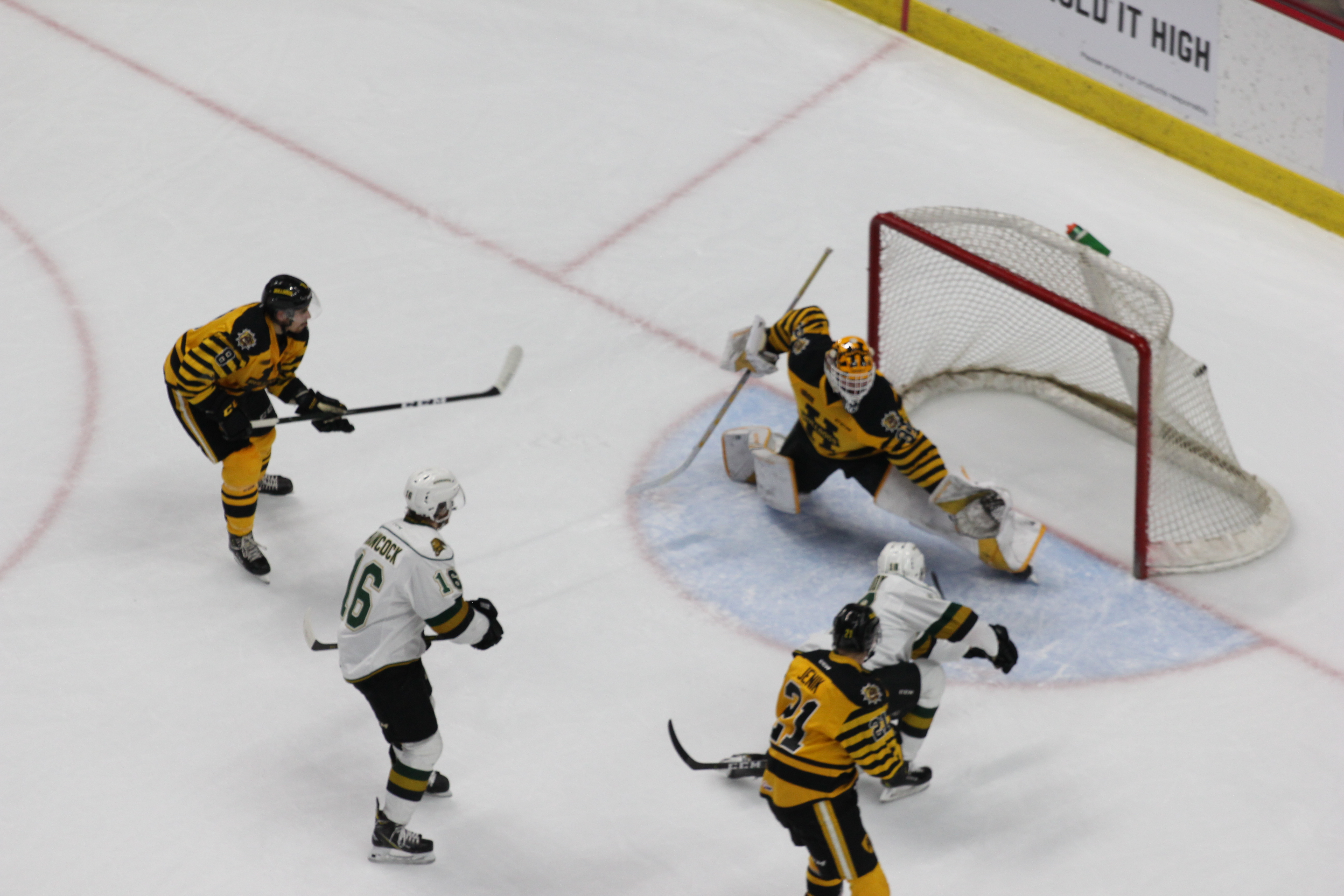 Liam Foudy banged in a Kevin Hancock rebound for his 35th goal of the season after a Hamilton defenceman fell creating a 2-on-1. The assist gave Hancock 101 points on the season.
