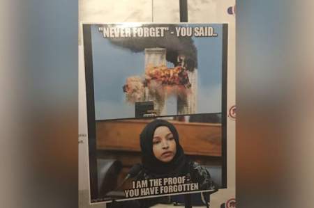 It shows an image of the burning twin towers with the words “Never forget — you said..” Below it is a picture of the Muslim Congresswoman along with the words “I am the proof — you have forgotten.”