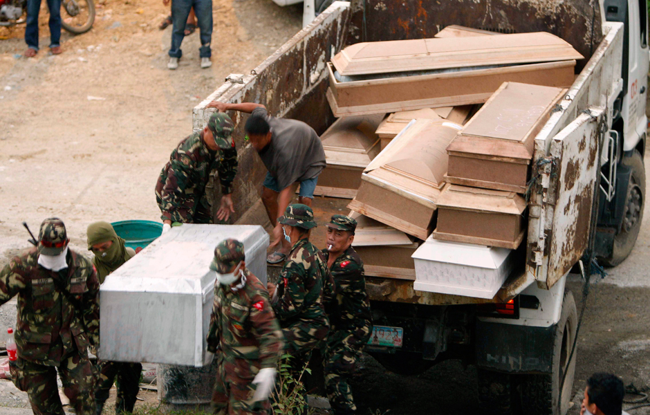 The government shipped more than 400 coffins to two flood-stricken cities in the southern Philippines today as the death toll neared 1,000 and President Benigno Aquino declared a state of national calamity. The latest count listed 957 dead and 49 missing and is expected to climb further as additional bodies are recovered from the sea and mud in Iligan and Cagayan de Oro cities.