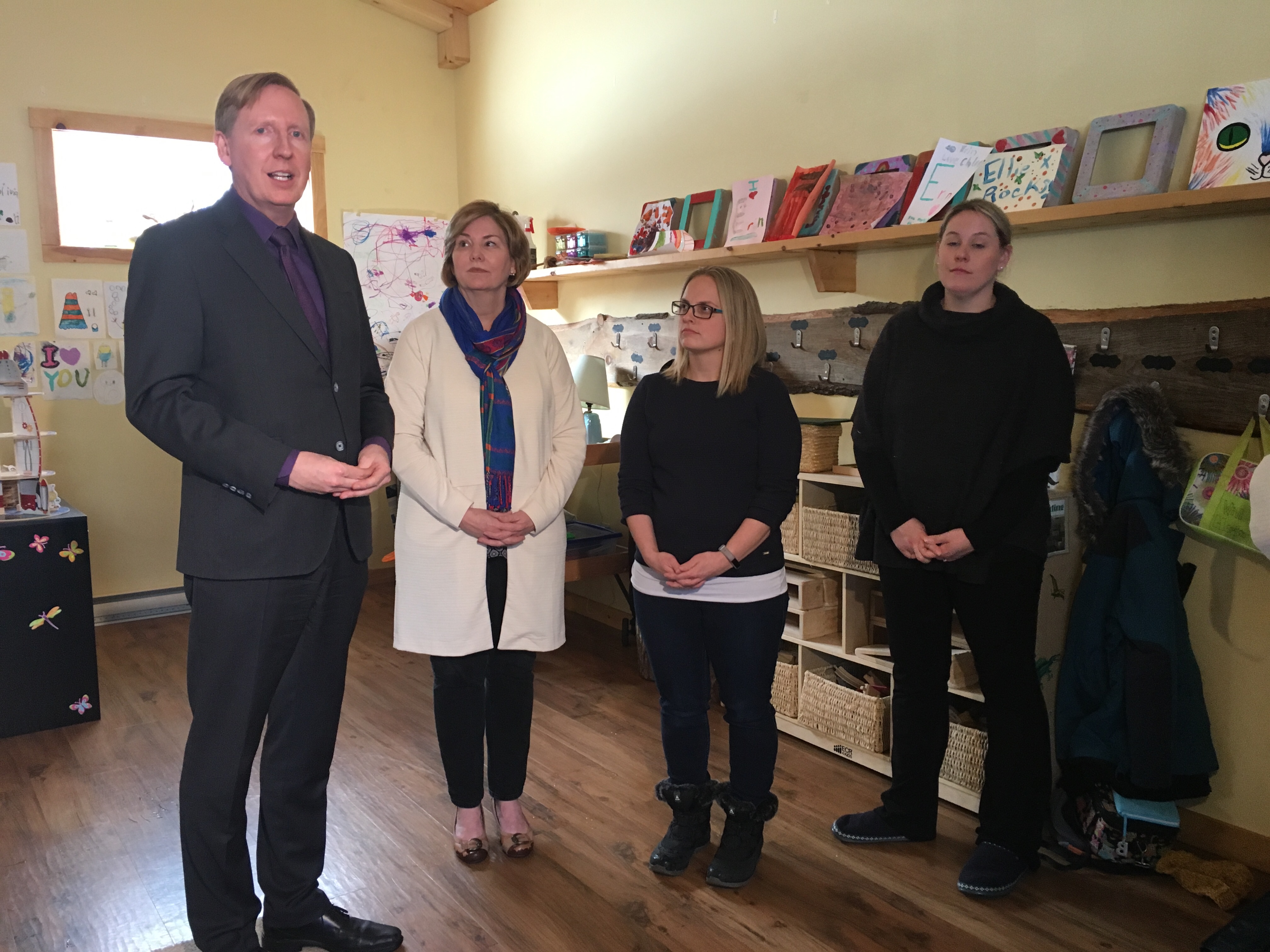 New Brunswick Education Minister Dominic Cardy and Liberal MP Karen Ludwig toured one of the province’s newly designated Early Learning Centres in Hanwell, N.B., on Tuesday.