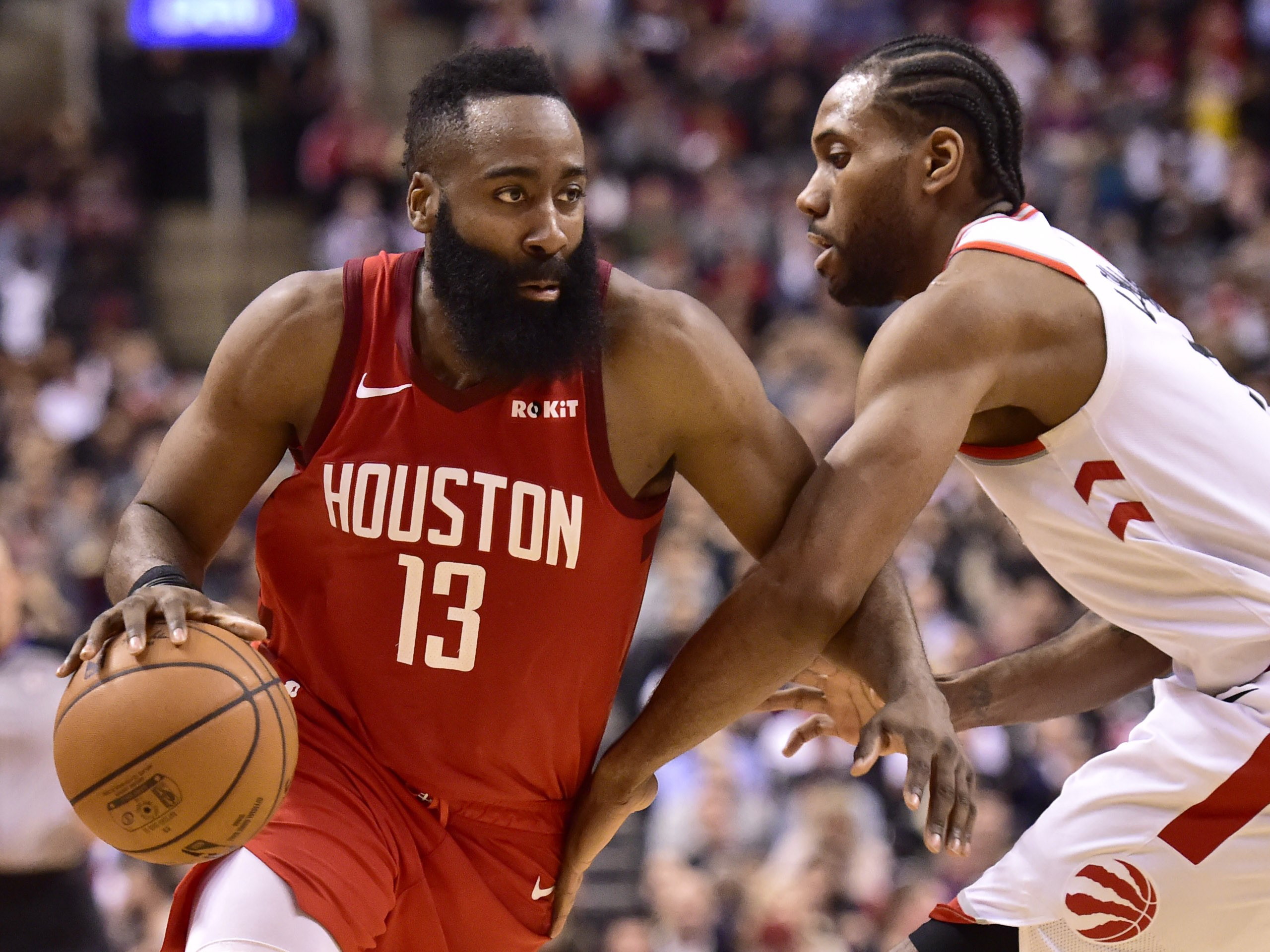 Leonard was back for Tuesday’s much-anticipated battle with Harden and one of the league’s elite teams. But the first half was disastrous for the Raptors, who coughed up 19 points on turnovers and couldn’t buy a three-pointer, making just three of 13 shots from long range.