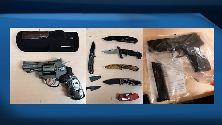 Two handgun and three replica guns were among the weapons seized, as well as a shotgun, knives and brass knuckles.