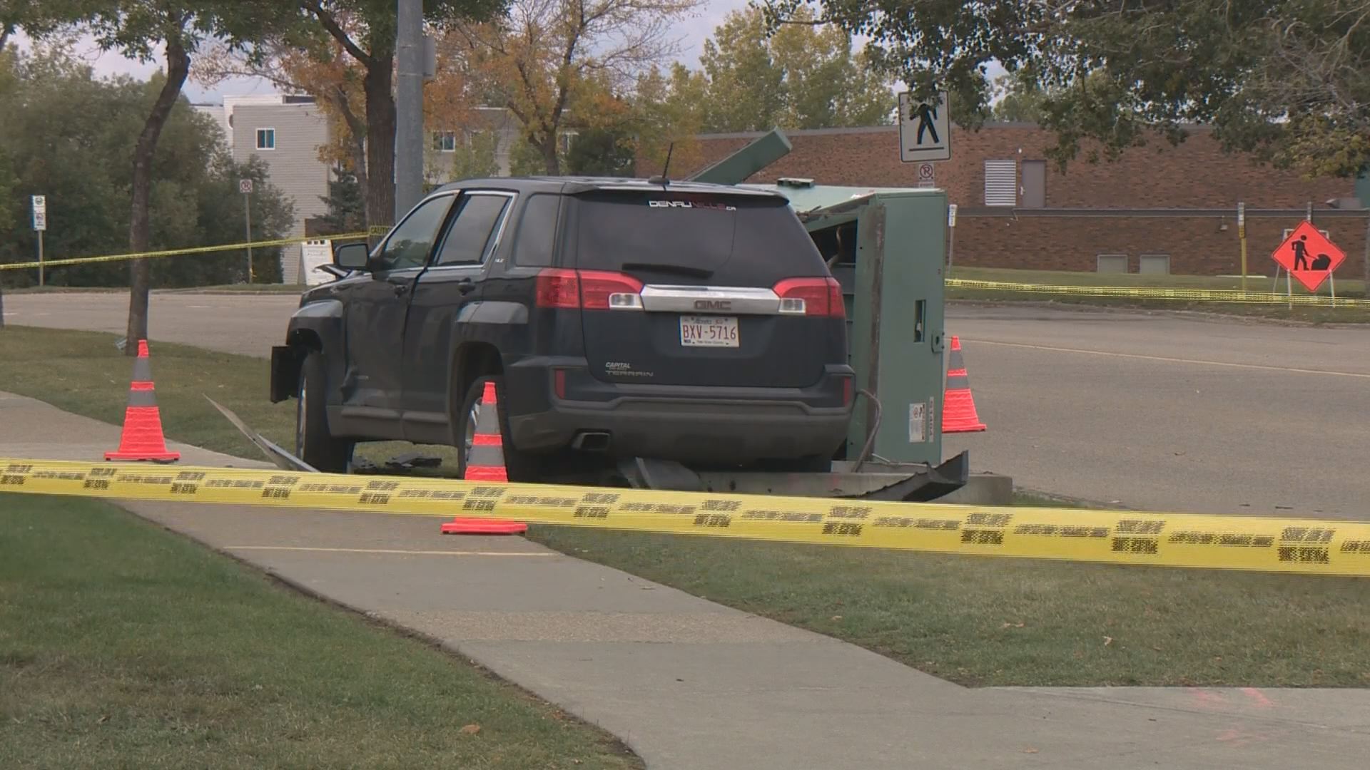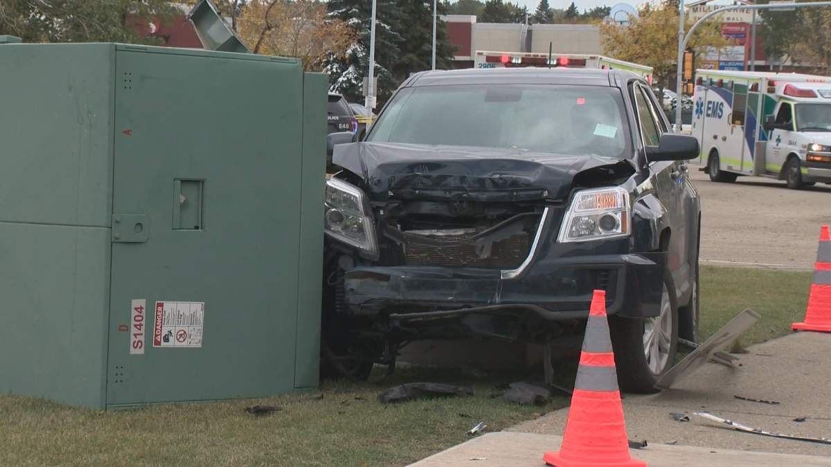 The collision, involving two vehicles and a scooter on Mill Woods Road between 38 Avenue and 85 Street, happened Friday, Sept. 14, 2018 at around 10 a.m.