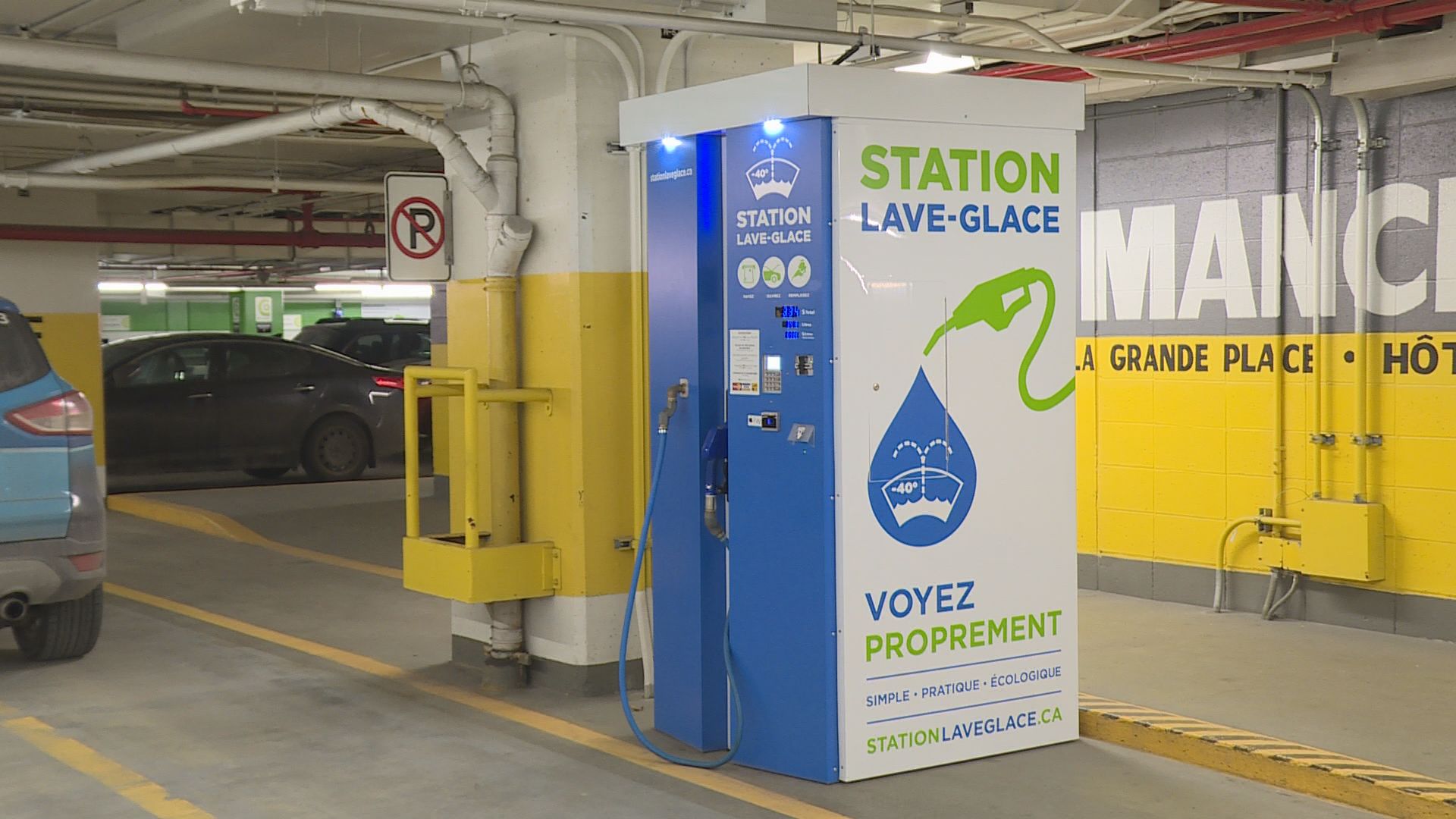 “This is an automatic dispenser for windshield washer fluid,” said Pierre Neron in front of his Station Lave-Glace in the underground parking lot of Complexe Desjardins in Montreal.