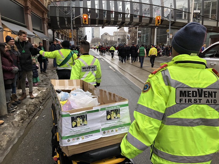 Toronto Paramedic Services is kicking off an unofficial spring food drive for the Daily Bread Food Bank as they march in this year’s St. Patrick’s Day parade.