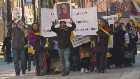 Hundreds of Calgarians marched down Stephen Avenue — from city hall to the Chinese consulate — on Sunday to rally against the Chinese occupation of Tibet.