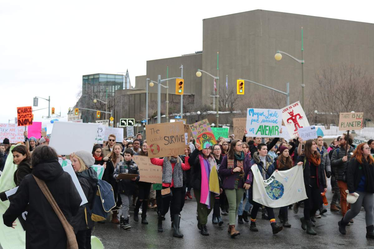 More than 300 students marched from the University of Ottawa to Parliament Hill Friday, joining hundreds of other protests worldwide in demanding action against ongoing climate change.