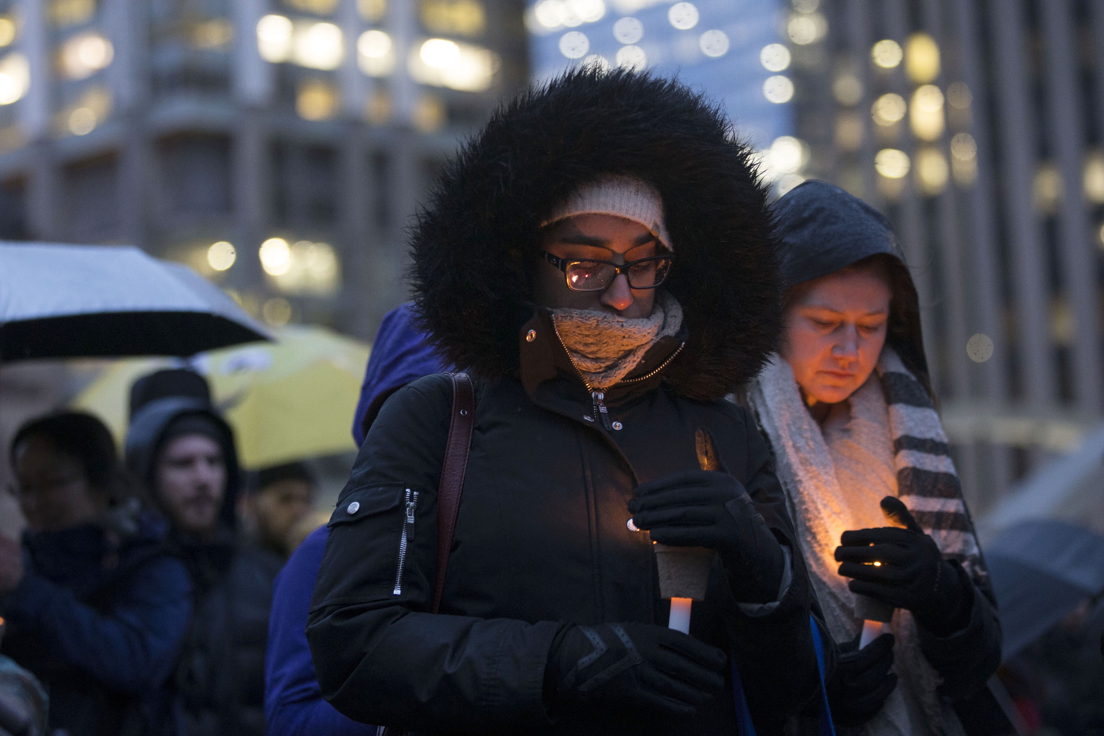 In Toronto, a crowd gathered at Nathan Phillips Square for a vigil, which was organized by Torontomuslims.com, Muslim Youth Fellowship, Faith in the City and Urban Alliance on Race Relations (UARR).