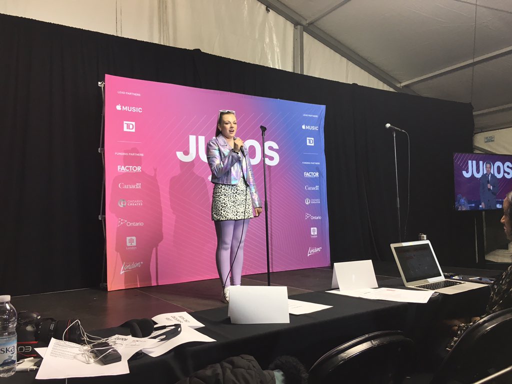 A young London woman had a couple moments of fame alongside host Sarah McLachlan during Sunday night’s Juno broadcast.