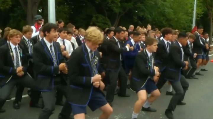 Students from various schools in Christchurch came together Monday to pay tribute to the victims of the New Zealand mosque attacks by performing a haka.