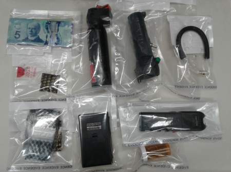 Early Sunday morning, a traffic stop on 4th Avenue S.E. in Dauphin led to the seizure of 11 grams of meth, cash, and various weapons, including a conducted energy weapon and a can of bear mace.