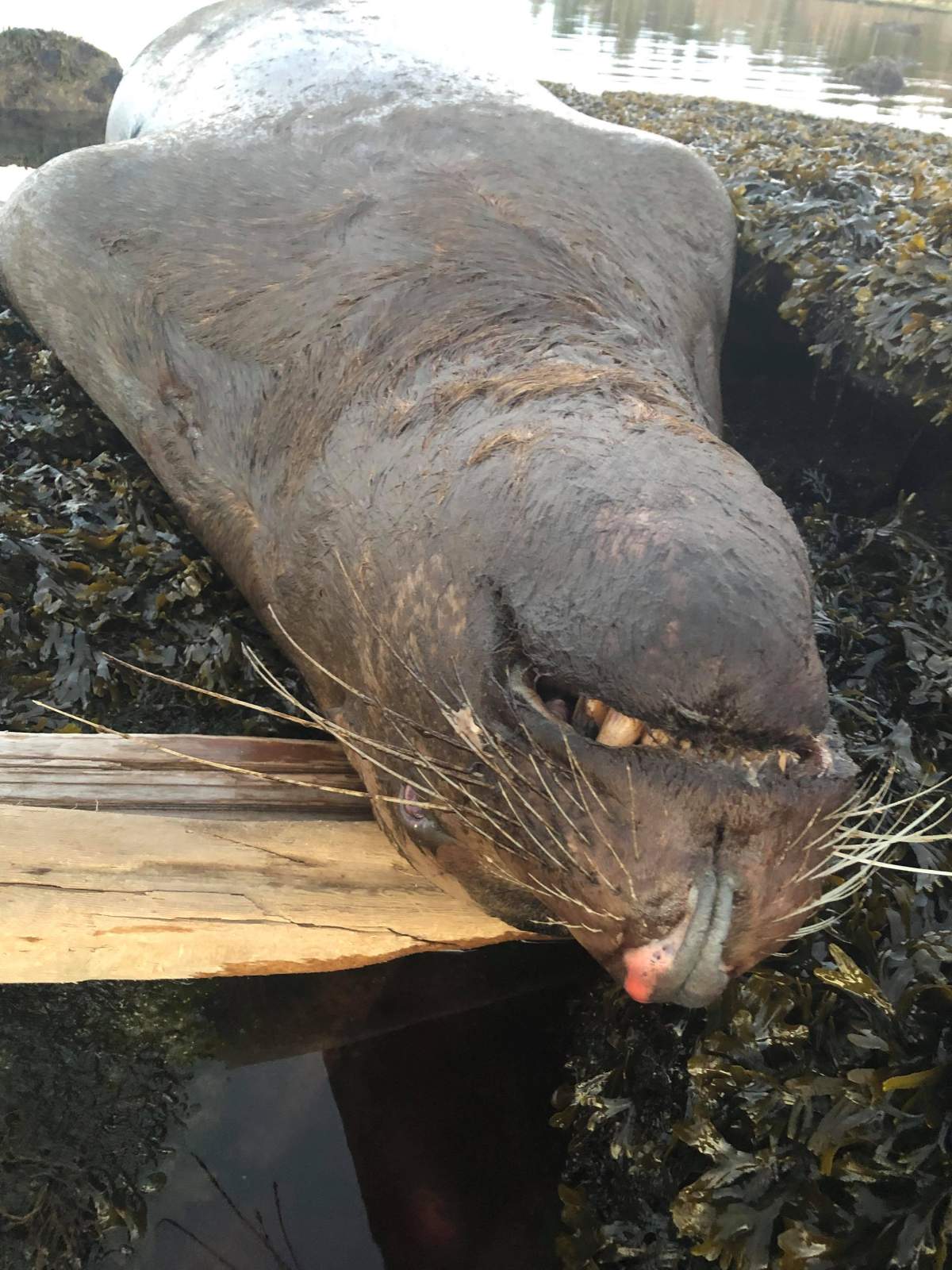 DISTURBING IMAGES: Pictures show a dead sea lion with a bullet wound in its head found washed ashore on Hornby Island.