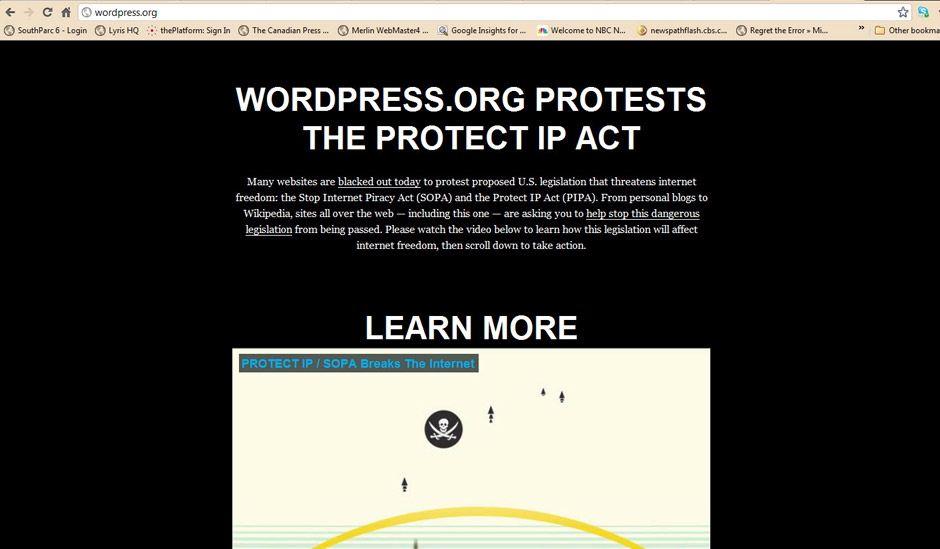 On Jan. 18, 2012, numerous popular websites including Wikipedia, Craigslist and Reddit went dark in protest. The websites are protesting the Stop Online Piracy Act (SOPA) in the U.S. House and the Protect Intellectual Property Act (PIPA) under consideration in the U.S. Senate. Here’s a look at some of the protesting websites.