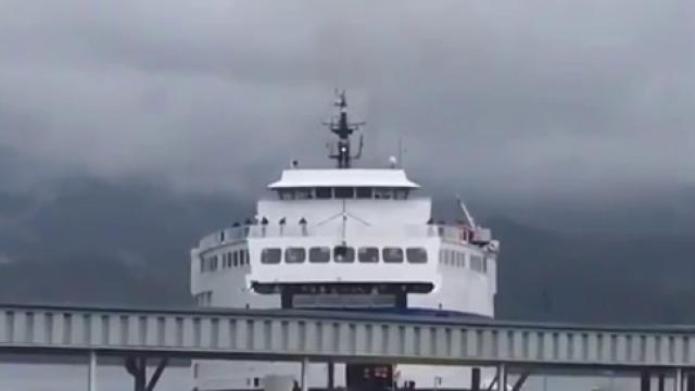 Marshall said there were no injuries. Nearly 300 passengers and 125 vehicles, none of which were damaged, remain on board.