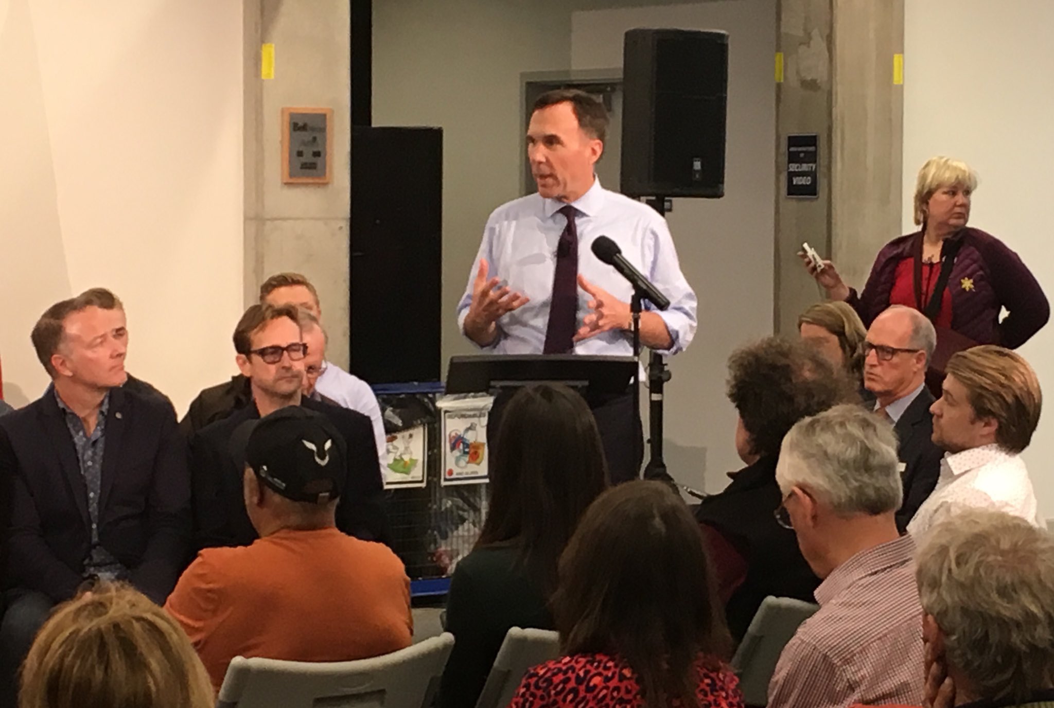 Finance minister Bill Morneau touted the recent federal budget during a visit to Kelowna’s Okanagan College campus on Tuesday.